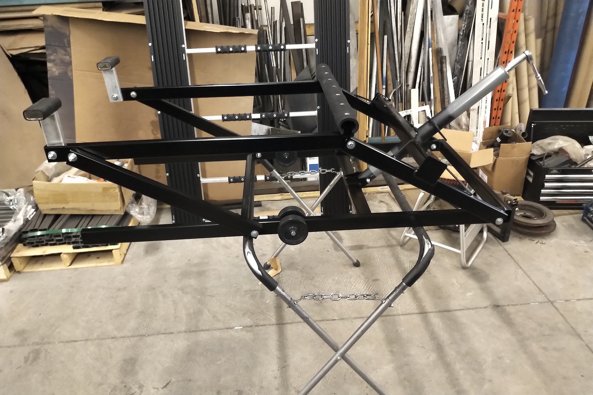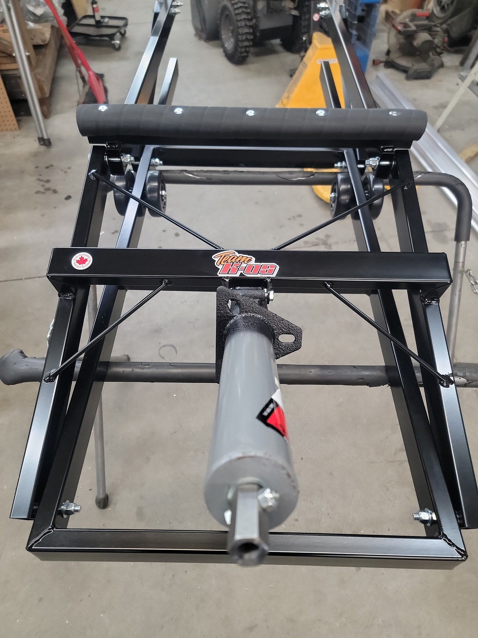 Quality materials, hardware and welds are what set TEAM K-OS lifts apart from the rest. Our lifts allow you to safely and easily move your sled around your garage for work or storage. The lifts can be sent with a hand crank but every lift comes with an adapter to use an electric drill. Please see our demonstration with the guys from SLEDADDICZ on YouTube. TEAM K-OS lifts are proudly made in Canada.